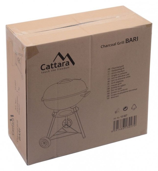 Pohledný gril BARI hodící se na zahrady, či terasy. Konstrukce je vyrobena z kvalitního ocelového plechu se smaltovanou povrchovou úpravou. Madla jsou z odolného plastu a mají dostatečný prostor pro úchop. Mobilitu zajištují tři kovové nohy, doplněné o zpevňující rám ve spodní časti. Navíc je gril vybaven kolečky z plastu, která zaručují dostatečnou pohyblivost. Gril je vybaven regulovatelnou ventilací a miskou na popel, či skapávající olej. Víko grilu je zcela odnímatelné a z vnitřní strany opatřené hákem pro zavěšení. Gril je dále opatřen roštem z chromované oceli pro samotnou tepelnou přípravu Vašich pochutin.