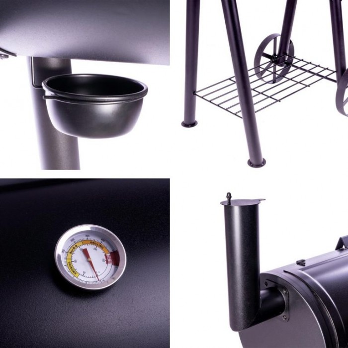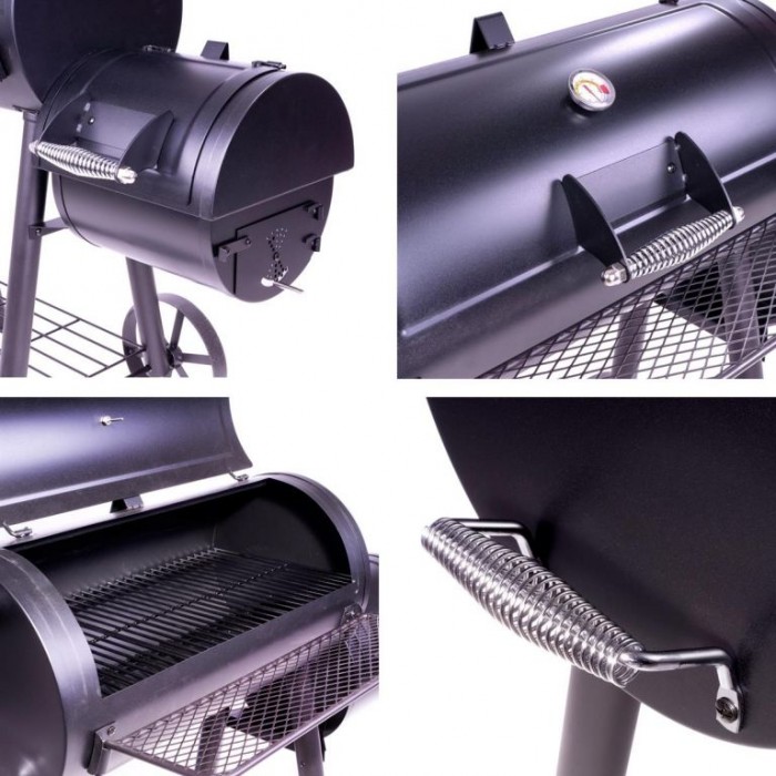 - 2 komory: hlavní gril (70 x 35 cm), ohniště (35 x 32 cm)
