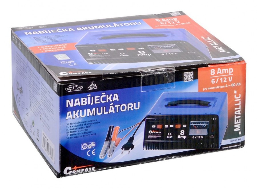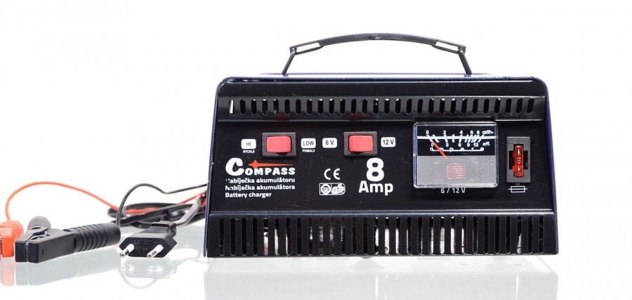 Celokovová automatická nabíječka akumulátorů 6 V nebo 12 V 8 Amp. Napájení 230 V, příkon 84 W. Umožňuje přepnutí nabíjení akumulátoru 6 V, nebo 12 V a zároveň umožňuje zvolit jednu ze dvou rychlostí nabíjení (šetrné a rychlé). Nabíječka je na čelní straně osazena ampérmetrem ukazujícím aktuální nabíjecí proud a pojistkou.