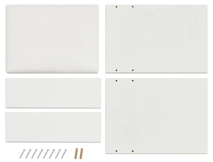 - Materiál: bílé laminované dřevěné desky, polštář z umělé kůže