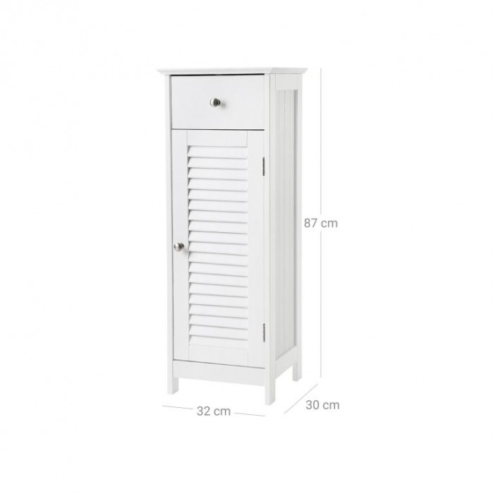 Vytvořte si doma harmonii a pořádek díky této úzké bílé skříňce, která stylově doplní vaši koupelnu, ložnici či předsíň. Lamelová dvířka a jednoduchý design přinášejí svěží severský vzhled a pocit čistoty do každého interiéru.
