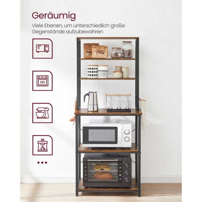 Vylepšete svou kuchyň o elegantní a praktický regál, který nabízí dostatek úložného prostoru i v menších místnostech. Šest polic a šest háčků vám umožní mít vše přehledně uspořádané a vždy po ruce.