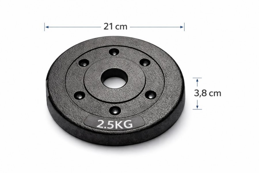 - kotouče – průměr / tloušťka: 1,25 kg (17,5 cm / 2,6 cm), 1,5 kg (19 cm / 2,8 cm), 2 kg (19,5 cm / 3,2 cm), 2,5 kg (21 cm / 3,8 cm)