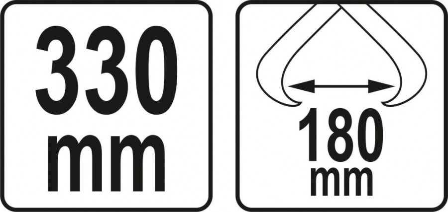 Vyrobeno z oceli, s délkou 330 mm, rozpětí čelistí 180 mm. Rukojeť je ergonomicky tvarována pro pohodlnou manipulaci.