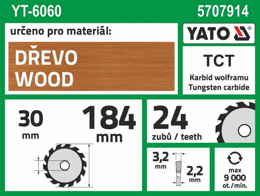 Popis: Kotouč na dřevo 184 x 30 mm 24z