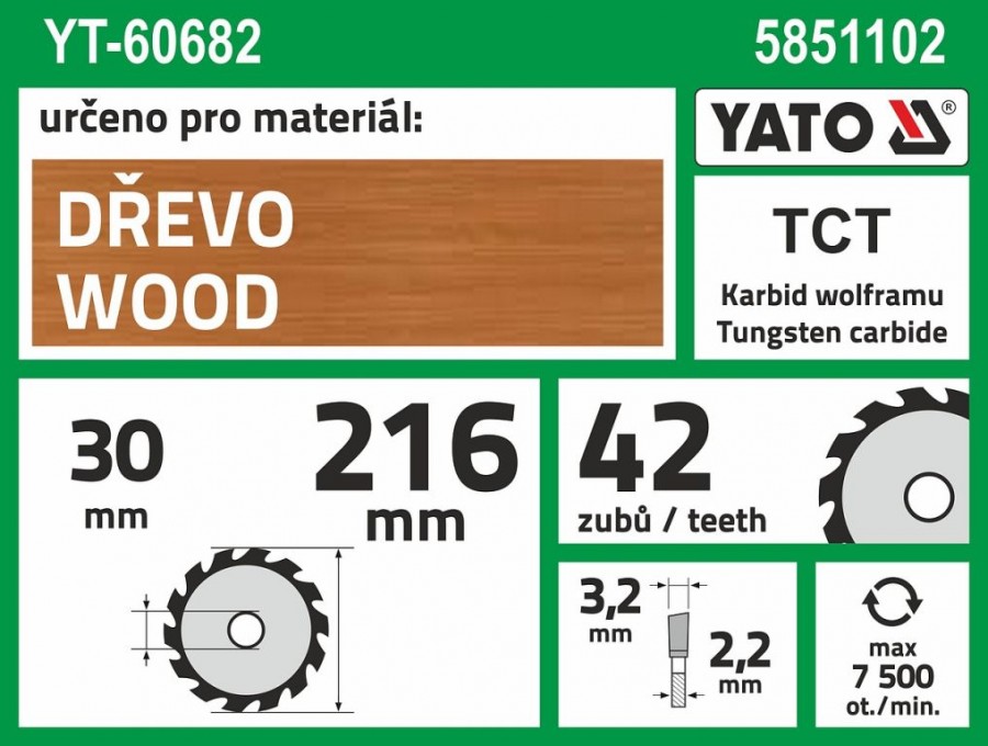 Popis: Kotouč na dřevo 216 x 30 mm 48z