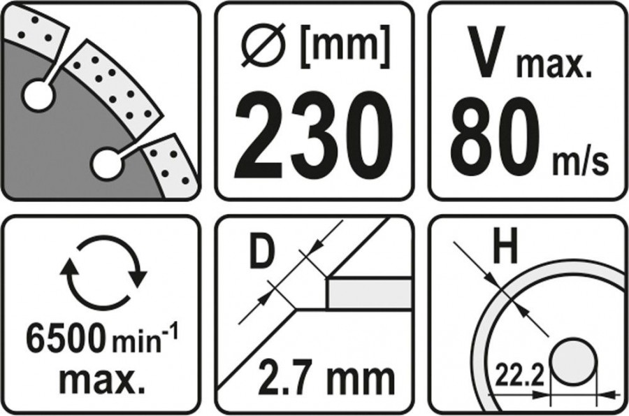 Kotouč diamantový pro suché řezání s použitím na beton, dlažbu, zdivo a kámen.