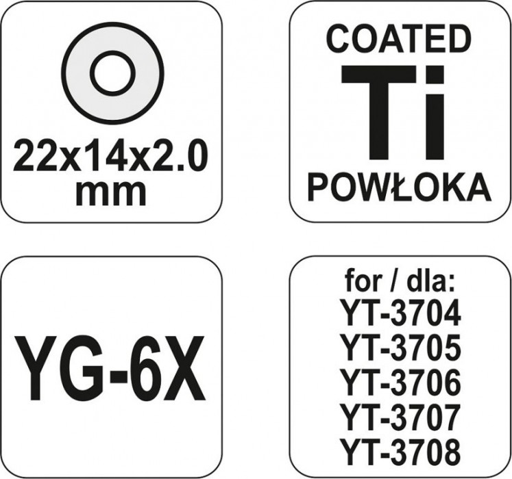 Kvalitní řezací kolečko pro řezačky obkladů a dlažeb, vyrobené ze speciálně tvrzené slitiny karbidu wolframu YG-6X, s povlakem nitridu titanu, který snižuje tření a zvyšuje odolnost.