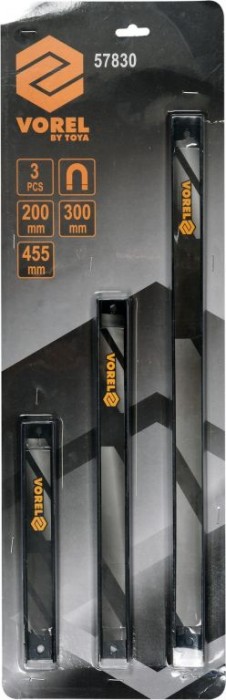 Sada 3 magnetických držáků nářadí, usnadňujících skladování nejnutnějších nástrojů v dílně. Vhodné pro různé typy nástrojů, jakými jsou např. klíče, šroubováky a kleště. Ocelové lamely vyplněné magnetem délek 200; 300 a 455 mm o šířce 26 mm lze připevnit na stěny i nábytek.