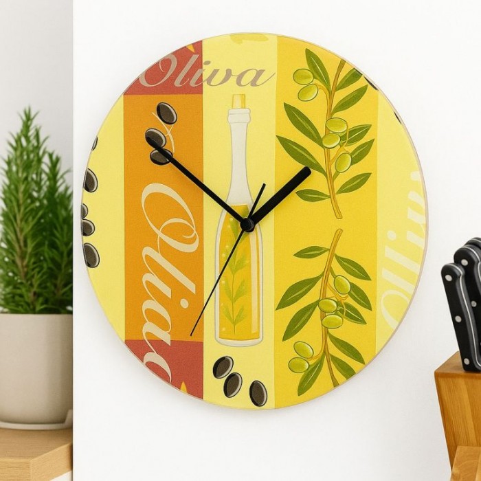 Popis: Nástěnné hodiny z tvrzeného skla Oliva 27 cm