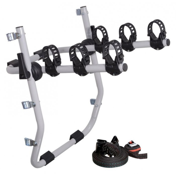 Univerzální nosič jízdních kol, s jednoduchým systémem upevnění na zadní dveře. Do nosiče je možné umístit až 3 běžná jízdní kola. Upevnění kola do nosiče pomocí jednoduchých objímek s fixační sponou, kterou lze upevnit i jednou rukou. Všechny části nosiče, které jsou v kontaktu s vozem, jsou opatřeny chrániči. Vyrobeno z oceli s antikorozní úpravou. Nosič se na vůz upevňuje systémem textilních upínacích pásů. Upozornění: Nosič lze použít pouze u vozidel, kde nosič, nebo v něm upevněná jízdní kola, nezakryjí registrační značku ani zadní světla automobilu. V opačném případě je nutné použít doplňková zadní světla s držákem registrační značky (nejsou součástí nosiče).