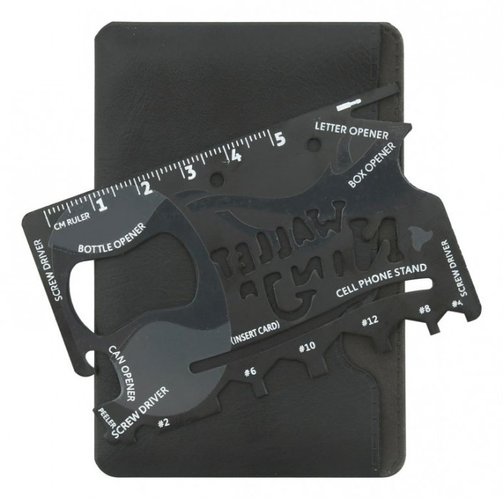 Multifunkční outdoor nástroj k přežití, poskytující 9 funkcí užitečných v různých situacích. Jedná se o drobný nástroj rozměrů 85 x 53 mm z kvalitní nerezové oceli o síle 1,1 mm. Nástroj je vybaven otvírákem na plechovky a lahve se zátkami, šroubovákem, měřítkem s milimetrovou stupnicí, měřítkem v palcích, klíčem na matice a šrouby 6 nejběžnějších rozměrů, otvírač dopisů, otvírač krabic a v neposlední řadě lze za pomocí karty vytvořit stojánek na telefon.