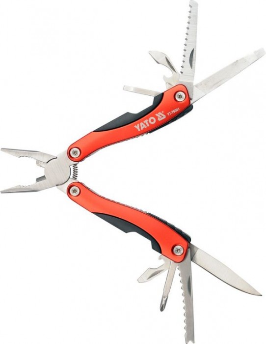 Provedení nástrojů je zpracováno z kvalitní nerezové oceli, rukojeť je tvarována z hliníku. Nožík je vybaven několika nástroji a to nožem, křížovým a plochým šroubovákem, pilkou, pilníkem, drátořezem, škrabkou a otvírákem, především pak kombinačními kleštěmi. Nožík díky svým funkcím najde uplatnění opravdu všude a je tedy dobré ho mít vždy při ruce. Spolu s nožem je součástí balení i pouzdro, které je možné zavěsit za opasek.
