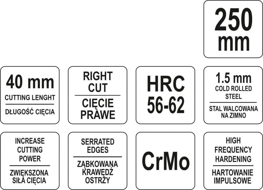 Popis: Nůžky na plech 250 mm pravé CrMo