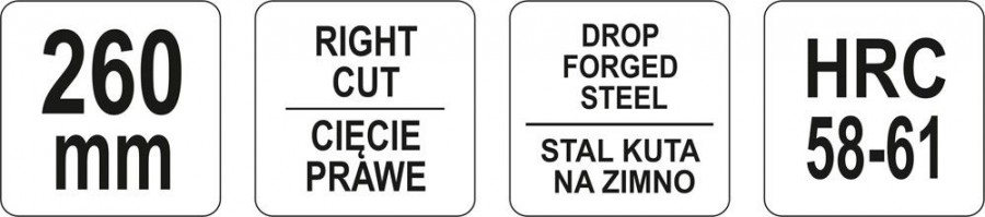Popis: Nůžky na plech 260 mm pravé