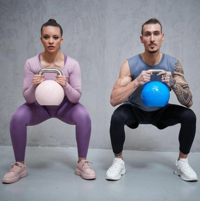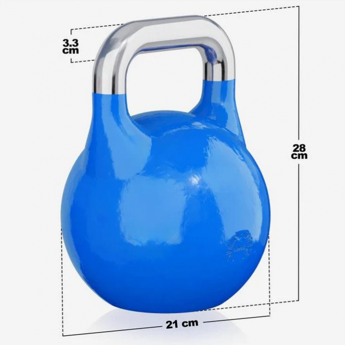 U fitness kettlebellů není specifikován materiál ani velikost. Oproti tomu jsou konkurenční varianty v zásadě vyrobeny z oceli a mají jednotnou velikost. Bez ohledu na hmotnost zvládá každý soutěžní kettlebell totéž. To vede k větší bezpečnosti při manipulaci. Robustní materiál si navíc dobře poradí s drsným kontaktem se zemí, k čemuž může dojít při intenzivním tréninku. Zde nabízený kettlebell je k dispozici s různými váhami, takže si můžete sestavit set kettlebellů podle svých představ. Spodní strana je zploštělá. Tímto způsobem se činka nedobrovolně neodvalí. Abyste mohli na první pohled rozlišit různé hmotnosti několika kettlebellů, každá váhová varianta má jinou barevnou povrchovou úpravu.