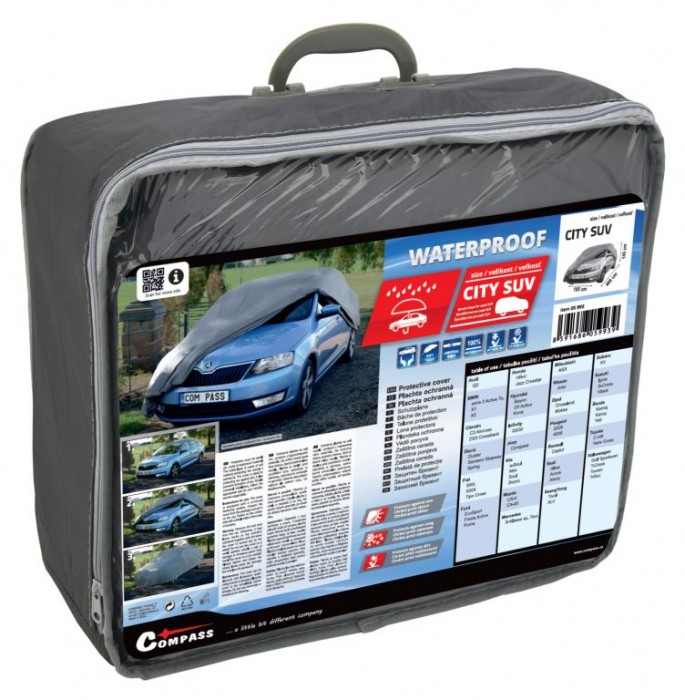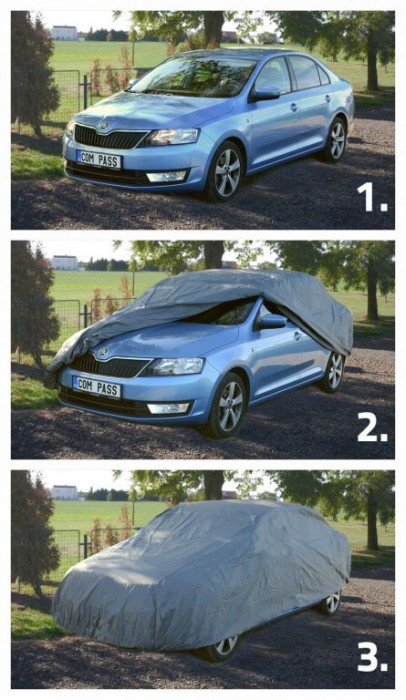 Ochranná plachta na celý vůz, vyrobeno z velmi odolného nepromokavého materiálu. Na vnitřní straně opatřeno vrstvou, které je šetrná k laku vozidla. Plachta je ideální proti znečištění vozu, zabraňuje i a námraze. Jednoduché univerzální upevnění. Baleno v praktickém, na zip uzavíratelném balení, do kterého lze plachu po použití snadno složit a uskladnit. Jednoduché upevnění plachty - pouze se nasadí na automobil, na spodku se upevní část s všitou gumou za vhodné záhyby karoserie / nárazníku. Přední i zadní část plachty je osazena pevnými oky, pomocí kterých lze plachtu ještě pevněji upevnit, například gumotahy apod (nejsou součástí dodávky).