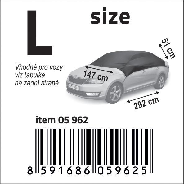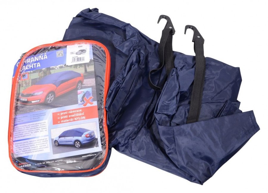 Prodyšná plachta na horní část automobilu. Optimálně zabraňuje tvoření námrazy na sklech, je vhodná i proti znečištění vozu. Jednoduché univerzální upevnění pomocí popruhů s háčky. Baleno v praktickém, na zip uzavíratelném balení, do kterého lze plachu po použití snadno složit a uskladnit.
