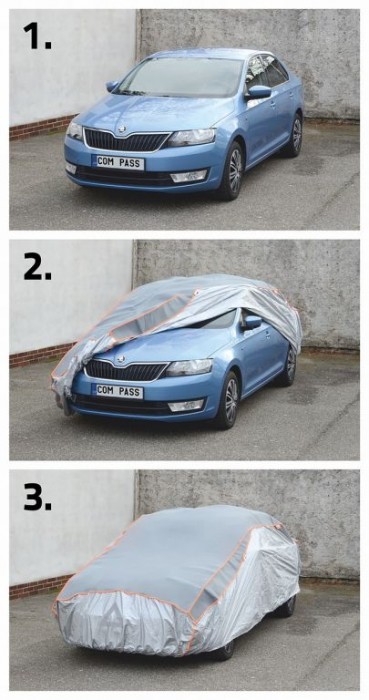 Horní část vyztužená zesíleným materiálem, který dokáže absorbovat nárazy krup při krupobití a tím zamezí poškození vozidla. Jednoduché upevnění plachty - pouze se nasadí na automobil, na spodku se upevní část s všitou gumou za vhodné záhyby karoserie / nárazníku a přední i zadní část plachty se důkladně upevní pomocí všitých popruhů se sponami. Absorpční efekt plachty proti nárazu ledových krup je vysoce účinný až do velikosti kroupy cca 12 mm s nárazovou rychlostí do 74 km/h. Při překročení těchto hodnot není ochranný účinek zaručen.