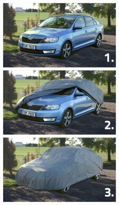 Plachta je ideální proti znečištění vozu, zabraňuje i a námraze. Jednoduché univerzální upevnění. Baleno v praktickém, na zip uzavíratelném balení, do kterého lze plachu po použití snadno složit a uskladnit. Jednoduché upevnění plachty - pouze se nasadí na automobil, na spodku se upevní část s všitou gumou za vhodné záhyby karoserie / nárazníku. Přední i zadní část plachty je osazena pevnými oky, pomocí kterých lze plachtu ještě pevněji upevnit.
