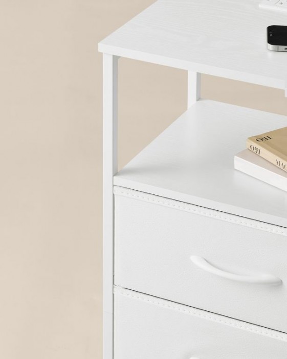 - Více úložných možností – Dvě zásuvky a otevřená police.