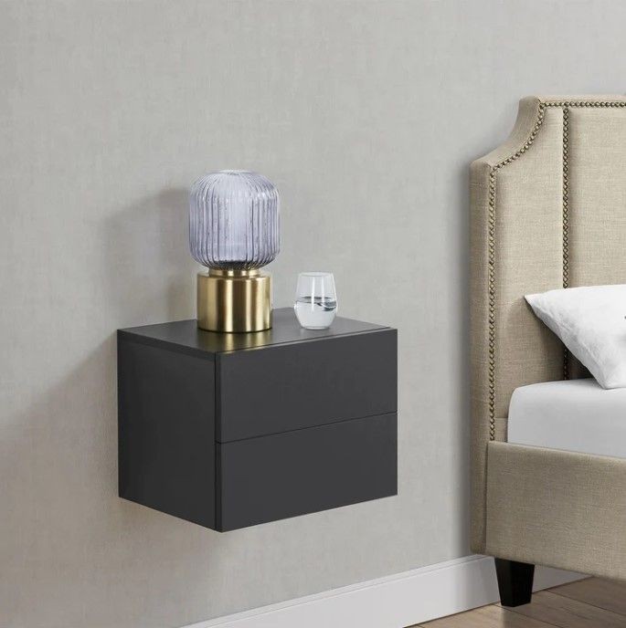 Vneste do svého domova moderní eleganci s tímto závěsným nočním stolkem v černé barvě. Dvě prostorné zásuvky vám umožní mít vše potřebné vždy po ruce, ať už vedle postele, v obýváku nebo na chodbě. Minimalistický design se hodí do každého interiéru a poskytuje prostor pro dekorace, knihy či lampičku.