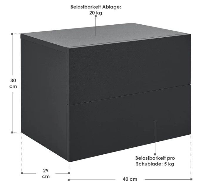 Popis: Závěsný noční stolek 40x29x30 cm černý, 2 zásuvky