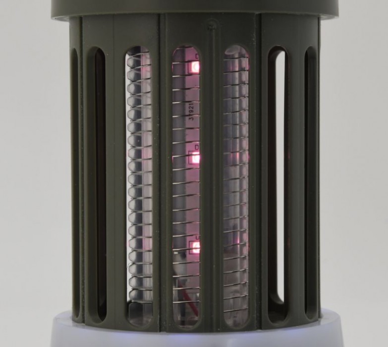 Lampička, díky které budete mít klid od otravného hmyzu i za letních večerů. Spolehlivě funguje například na mouchy, můry, moly, komáry a další. Hmyz je po kontaktu s kovovou sítí pod vysokým napětím zahuben elektrickým proudem. Přístroj k hubení nevyužívá žádných chemických látek, pracuje bez zápachu a bez znečištění. Přístroj je vhodný pro použití doma, na zahradě, v kempu, ale i v restauracích a kantýnách, kancelářích, nebo nemocnicích. Lampičku lze postavit na stůl, zavěsit a je vhodná k přenášení. Pro běžné osvětlení jsou použity SMD LED napájené pomocí akumulátoru, případně pomocí bateriíí. Pro nabíjení Li-Ion akumulátoru je určen přibalený kabel. Ovládání je řešeno tlačítky na přední straně zařízení.