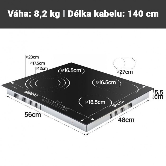 - povrch: sklokeramický (tloušťka 4 mm)