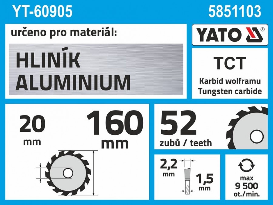 Popis: Kotouč na hliník 160 x 20 mm 52z