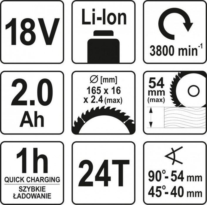 Vhodné pro použití při zastřešování, zahradní architektuře, stavebních a dokončovacích prací. Ergonomické držadlo s pomocnou rukojetí umožňuje pohodlné a bezpečné použití jednou rukou. Pila má ochranný kryt pro zvýšení bezpečnosti práce. Napájení pomocí akumulátoru s rychlým nabíjením. A 4 stupňovou indikací nabití.