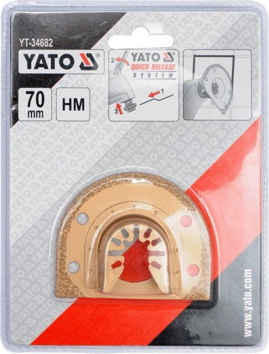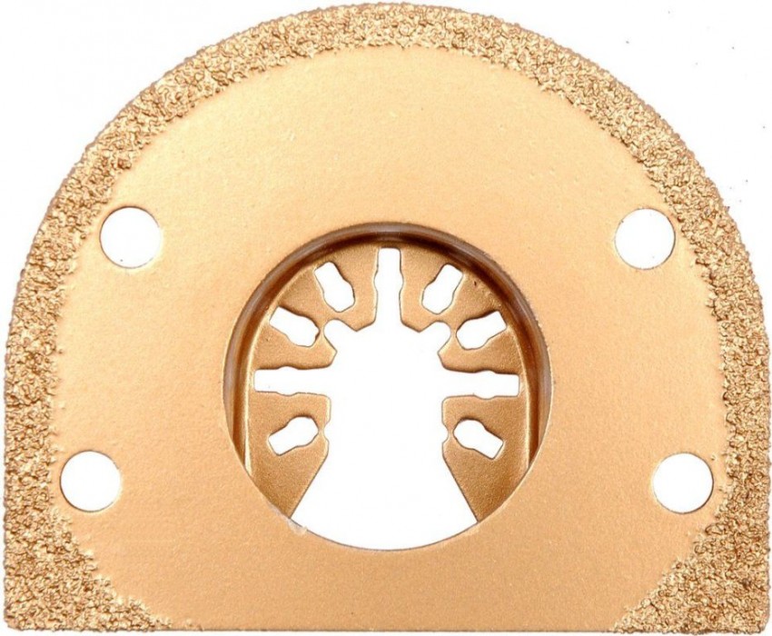 Segmentový řezací nástroj HM s nánosem karbidu wolframu s upínacím systémem OIS, pro řezání stavebních materiálů nař. dlažby, obklady, beton, zdivo. Upínání OIS, dovoluje tento nástroj použít v oscilačních přístrojích značek, jako například Fein, Bosch, Makita, Miwaukee, AEG, Skil, Einhell, Yato, PowerUp, Extol, Worx, Multi Master, Rockwell a mnoho dalších.