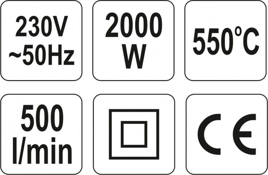 Klasická kvalitní horkovzdušná pistole Yato s dvěmi stupni výkonu. Tato pistole nemá v příslušenství žádné dodatečné usměrňovací trysky proudu horkého vzduchu.