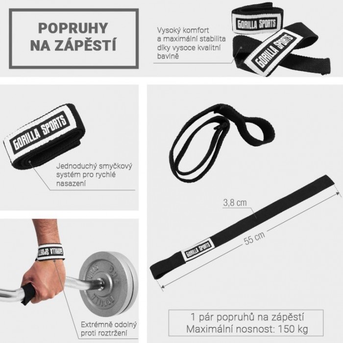 Popis: Gorilla Sports Popruhy na zápěstí, černá/bílá