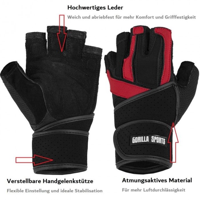 Popis: Gorilla Sports Rukavice včetně bandáže, černá/červená, S