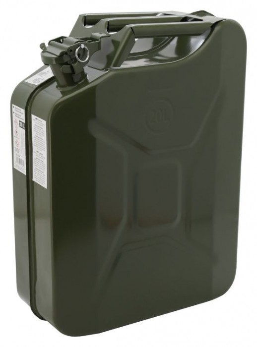 Profilované boky zajistí pevný tvar, nedochází tak k prohýbání stěn vlivem tlaku. Kanystr je na vrchní straně opatřen praktickou rukojetí usnadňující manipulaci. Povrch je tradičně zeleno-olivově nabarven, materiál je tak ochráněn před korozí.