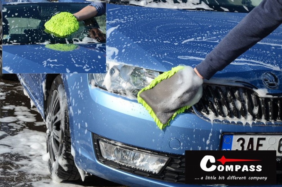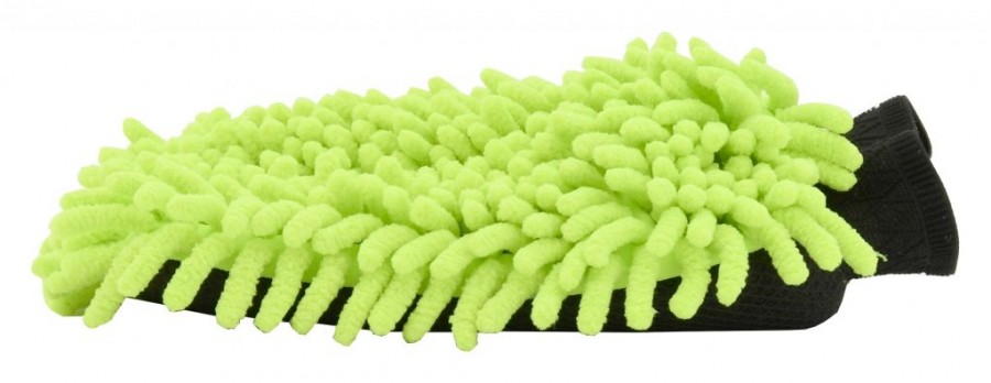 Oboustranná mycí rukavice s třásněmi z mikrovlákna a sítěnou zadní stranou vhodná k šetrnému mytí. Rukavice si získávají čím dál větší oblibu, díky dokonalému kopírování karoserie.Mimo jiné i díky citu při „zadrhnutí“ o odolnější nečistoty. Třásně z mikrovlákna absorbují více vody a nečistot, než běžné mycí pomůcky. Díky tomu chrání choulostivou karoserii před poškrábáním. Mikrovlákenné třásně umožní použít rukavici v suchém stavu, jako účinnou prachovku. Zadní strana rukavice je navíc opatřena mřížkovanou strukturou pro očištění odolných nečistot. Rukavice je ideální k použití metodou dvou kbelíků, kdy v jednom je voda s autošamponem a ve druhém samotná voda k oplachu zachycených nečistot na rukavici.