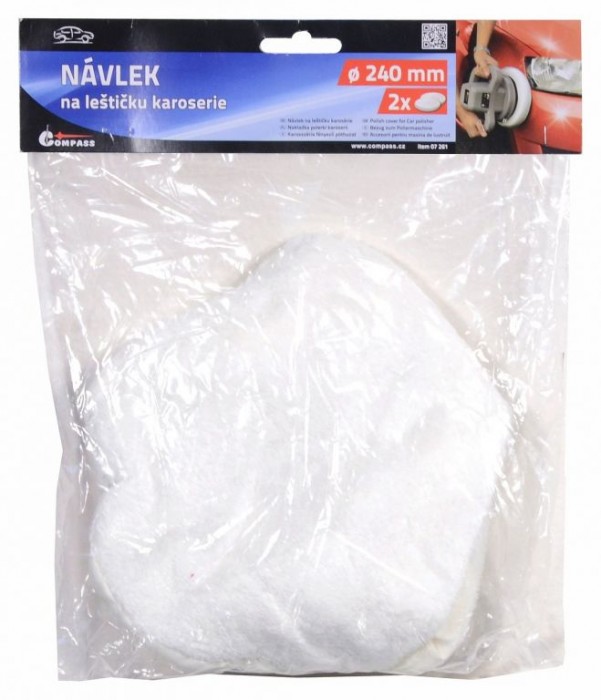 Náhradní návleky (kryty) pro leštičku karoserie s kotoučem o průměru 240 mm. Balení obsahuje dva návleky, jeden nanášecí a druhý rozlešťovací.