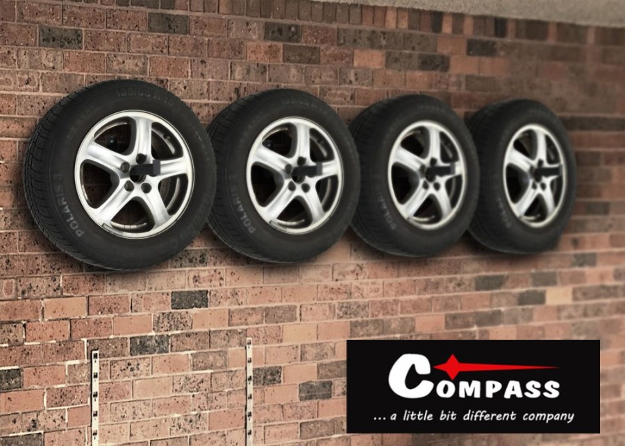Jednotlivé držáky se uchytí na pevnou stěnu pomocí šroubů s hmoždinkami. Stěna musí být dostatečně pevná, schopná unést hmotnost pneumatik včetně disků.