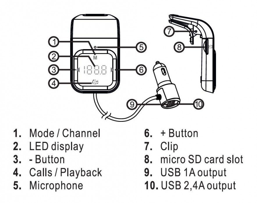 FM transmitter pracuje jako nabíječka, handsfree sada a hudební přehrávač v jednom. Snadno tak lze nabíjet zařízení pomocí USB rozhraní nebo paměťové karty a v neposlední řadě telefonovat.