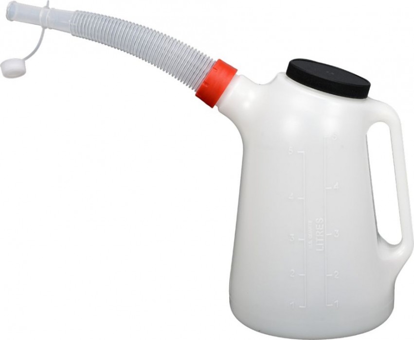 Zhotovení z odolného PE materiálu odolného vůči technickým kapalinám, opatřená šroubovacím víkem a ohebnou nálevkou.