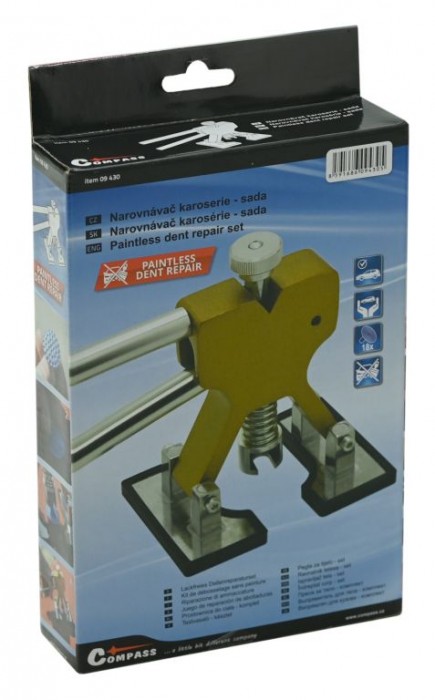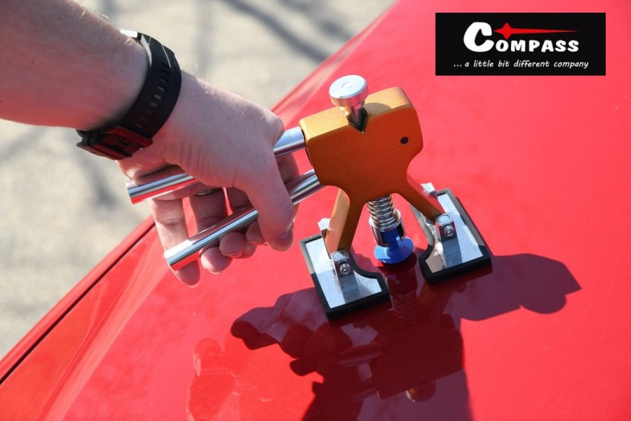 Metoda je vhodná pro snadné a rychlé opravy, kdy v rámci pár hodin opravíte tyto defekty karoserie svépomocí. Sada obsahuje několik kusů plastových vytahovacích trnů různých rozměrů a tvarů. Trny jsou na karoserii umístěny aplikací lepidla z běžné tavné pistole (není přiložena). Samotné hliníkové zařízení je opatřeno patkami s gumou. Lze jej tak umístit na jakékoliv místo karoserie, bez rizika poškrábání laku. Vrchní část zařízení je opatřena šroubovacím mechanismem, umožňujícím nastavení výšky čelisti vůči trnu. Opakovaným stiskem dochází ke zdvihu čelisti spolu s trnem a tím dochází k pozvolnému rovnání karoserie. Pro precizní opravu doporučujeme opakovat rovnání pomocí stále menších trnů (dle velikosti prohlubně), dokud nebude karoserie zcela vyrovnána.