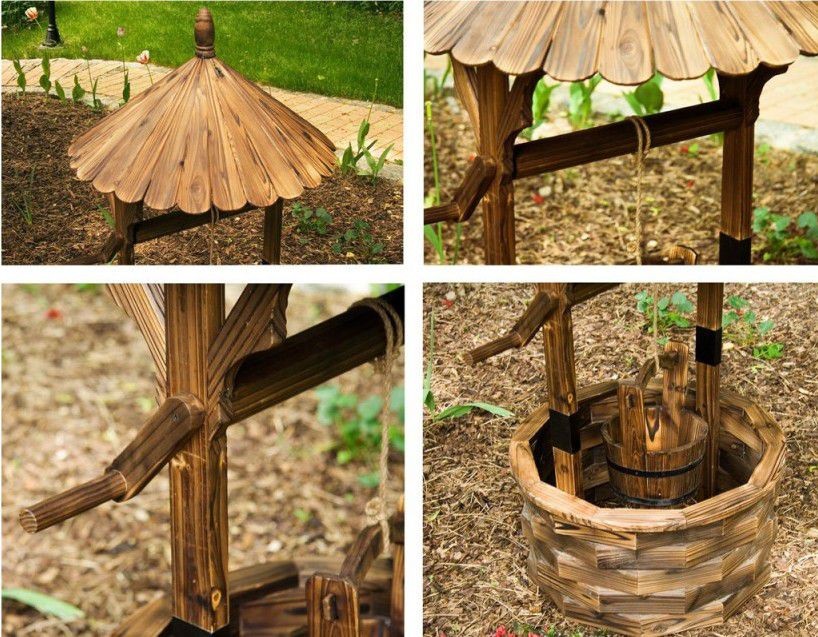 Popis: Zahradní dekorace, dřevěná studna