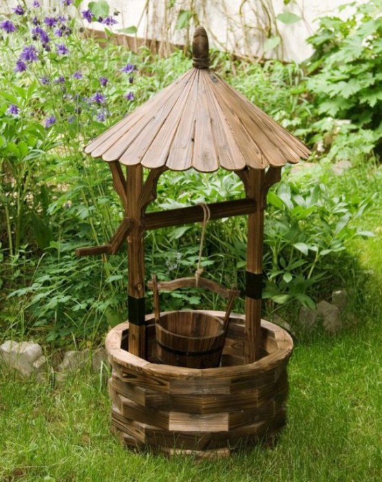 Zahradní dekorace, dřevěná studna