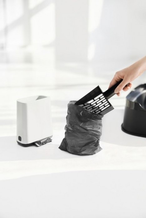 Designová lopatka s držákem z kolekce BIALA. Lopatka slouží k odebrání kočičích exkrementů z nádoby se stelivem. Tato lopatka svým designem a barvami ladí k toaletě pro kočky Biala. Set obsahuje roli sáčků, kterou lze umístit do spodní části držáku (spodek lze vycvaknout) a jednoduše vytahovat.