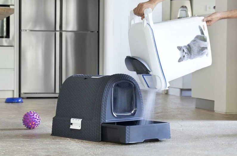 Elegantní plastová toaleta pro kočky - barva antracit (tm. šedá). Toaleta nepůsobí rušivě v interiéru. Krásný design v ratanovém stylu. Toaleta je vybavena výsuvnou zásuvkou a skrýší na příslušenství (lopatka a rohož čistící tlapky jsou součástí balení). Disponuje těsnými západkami, které omezují vysypávání písku. Pohodlné držadlo vám usnadní jehopřenášení. Odolná vůči UV záření. Kvalita a design značky Curver - PET LINE.