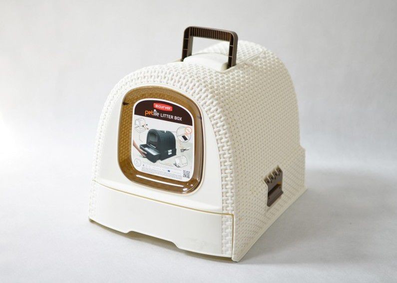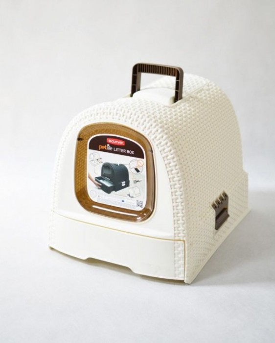 Elegantní plastová toaleta pro kočky - barva vintage. Toaleta nepůsobí rušivě v interiéru. Krásný design v ratanovém stylu. Toaleta je vybavena výsuvnou zásuvkou a skrýší na příslušenství (lopatka a rohož čistící tlapky jsou součástí balení). Disponuje těsnými západkami, které omezují vysypávání písku. Pohodlné držadlo vám usnadní jehopřenášení. Odolná vůči UV záření. Kvalita a design značky Curver - PET LINE.