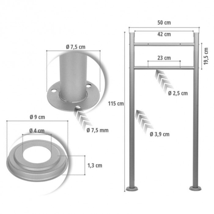 Stojan STILISTA promění Vaši nástěnnou poštovní schránku během chvilky ve stojící poštovní schránku. Stojan je vyroben z práškově lakovaného kovu a je vhodný pro poštovní schránky o velikosti otvoru 23 cm. Stojan je dodáván s veškerým potřebným montážním materiálem.