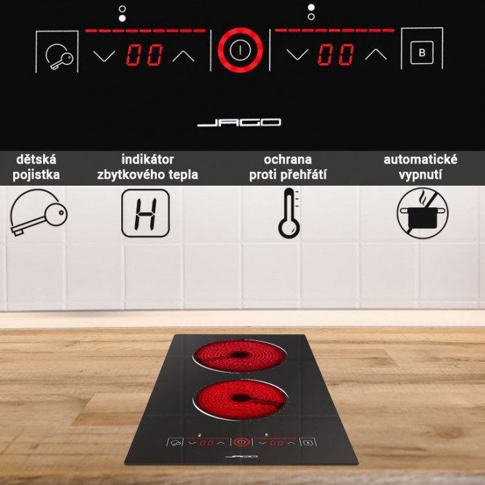 Popis: JAGO Sklokeramická varná deska, 1200/1800 W