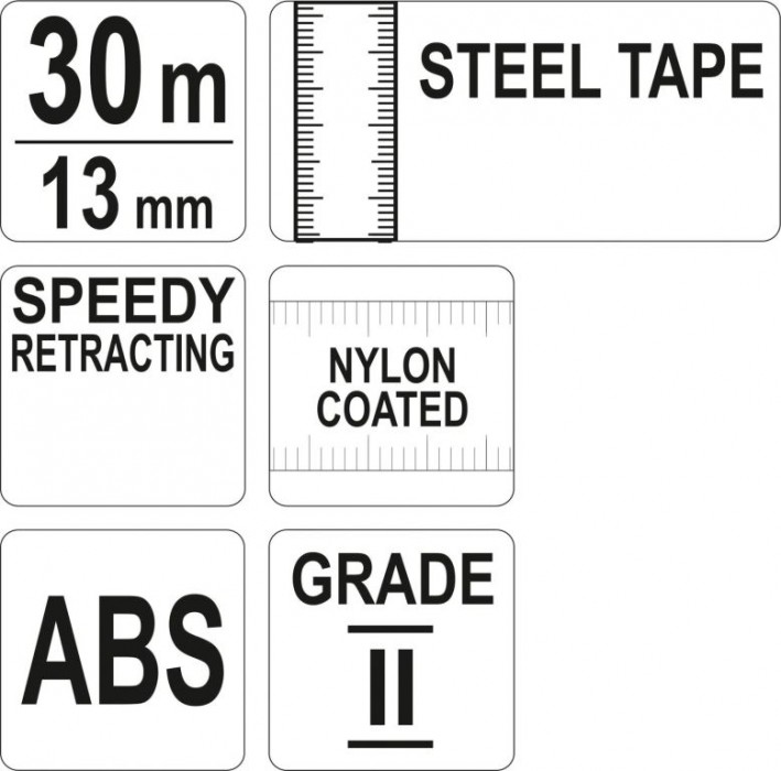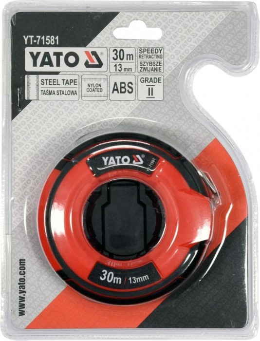 Měřící pásmo o délce 30 m s šířkou 13 mm.